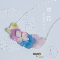 材料包括:完成乾燥的繡球花五片、日本膠水、鏈子、小包乾燥劑